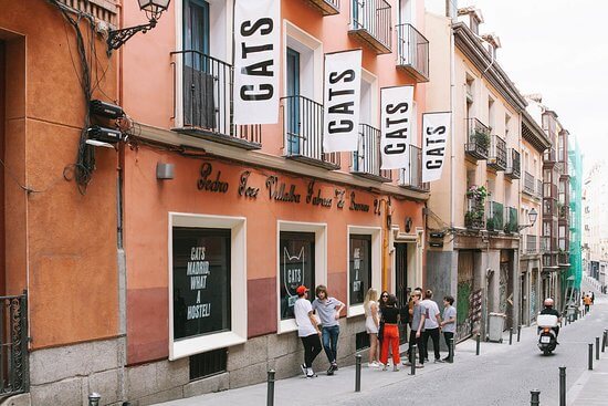 If you wanna party, THIS is your spot. Cats has been Madrid’s legendary party hostel for 15 years. There’s a 24-hour bar, an underground nightclub called The Cave, nightly pub crawls, and even a weekly sangria party where they literally fill the fountain with sangria. The hostel itself is gorgeous too — built around a protected 17th-century Arab-Andalusian patio. Dorms start at just €19/night.